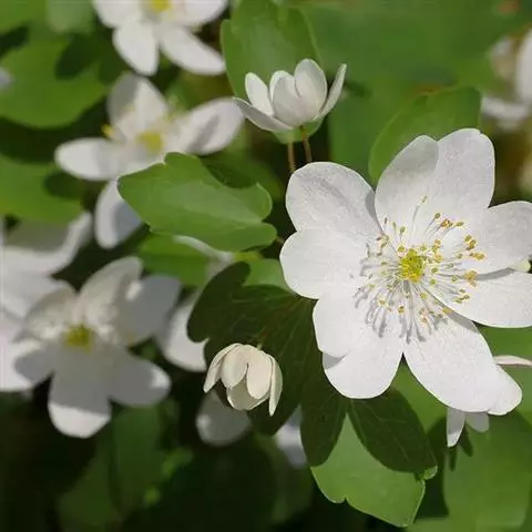 根状茎细圆柱形至近纺锤形,粗2-6毫米。叶多数,通常为二回三出复叶,无毛;叶片轮廓三角状卵形,宽2-6厘米,中央小叶宽菱形至肾状宽菱形,长5-8毫米,宽5-10毫米,三深裂,每深裂片再2-3细裂,小裂片倒披针形至椭圆状倒披针形,通常宽1.5-2毫米,表面绿色,背面淡绿色;叶柄细长,长2.5-11厘米。花葶直立,比叶长,长3-18厘米;苞片2枚,生于花下3-33毫米处,对生或互生,倒披针形,长4-12毫米,基部有膜质的鞘;花直径2.8-5厘米;萼片淡堇色或淡紫红色,偶为白色,倒卵形至椭圆状倒卵形,长1.4-2.5厘米,宽0.9-1.5厘米,顶端近圆形;花瓣,5片,倒卵形至倒卵状长椭圆形,长约5毫米,顶端微凹,下部浅囊状;花药长0.8-1毫米,花丝长5-8.5毫米;心皮5(-8)枚,无毛。蓇葖直立,连同2毫米长的短喙共长11-14毫米,宽约4毫米;种子狭卵球形,长1.3-1.8毫米,褐色,一侧生狭翅,光滑。6-8月开花,8-9月结果。 [2-3]
