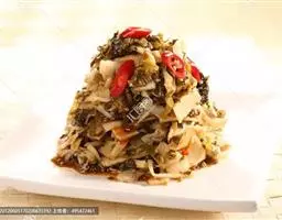 2、放菜到锅里跟肉一起炒,注意要多放点油,还要放适量的盐3、菜有些熟了,加水漫过菜,小火煮
