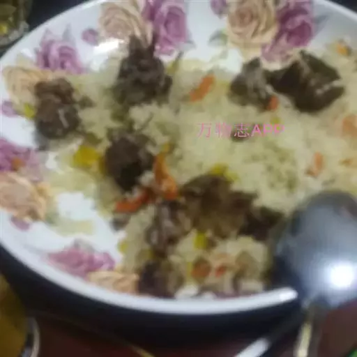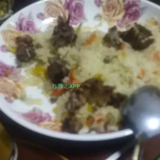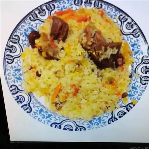 羊肉丁、葡萄干、胡萝卜、洋葱、孜然、大米。