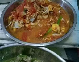 手抓饭 “抓饭”,维吾尔语叫“坡撸(پولۇ)”,是维吾尔、土克曼、乌兹别克等民族兄弟以及中亚国家、俄罗斯联邦等民族执行宾客的风味食品之一。逢年过节、婚丧嫁娶的日子里,都必备“抓饭”待客。他们的传统习惯是先请客人们围坐在炕上,当中铺上一块干净餐布。随后主人一手端盆,一手执壶,请客人逐个淋洗净手,并递给干净毛巾擦干。待客人们全部洗净手坐好后,主人端来几盘“抓饭”,置餐布上(习惯是二至三人一盘),请客人直接用手从盘中抓吃。故取名为“抓饭”。有些家庭接待汉族客人,一般都备有小勺。