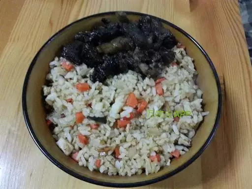 5、饭做的时候水放多少很重要,大米跟水的比例大约是1:2,这样做出来的饭是一粒一粒油光光的。