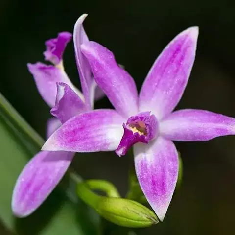 细茎石斛 Sw.)是兰科、石斛属的国家二级保护植物。茎直立,细圆柱形,具多节。叶数枚,二列,…