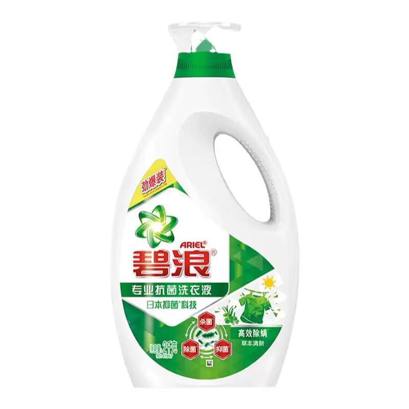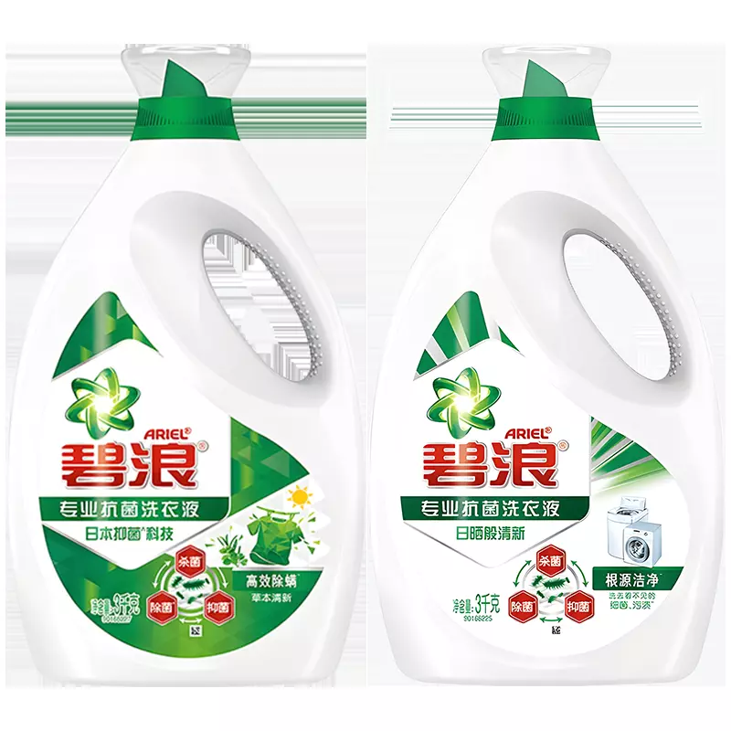 绿色装 蓝色装 2010年7月,碧浪品牌于中国推出“碧浪去渍超净洗衣液”。2011年11月,碧浪洗衣液全线升级,推出绿色装洁护如新洗衣液、蓝色装清雅茉莉香型洁护如新洗衣液。同时,碧浪选择华人天后小S作为品牌代言人。