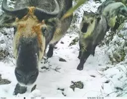 羚牛,偶蹄目牛科羚牛属哺乳动物,俗称扭角羚、野山牛、盘羊。其体形粗壮。尾短。吻鼻部隆起且裸露。…