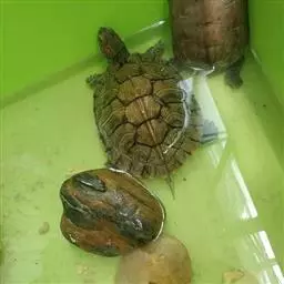 是水质调节:地龟喜欢在水质比较清新的水体内生活,春秋季每10天换水一次,夏季3~5天就要换水一次。