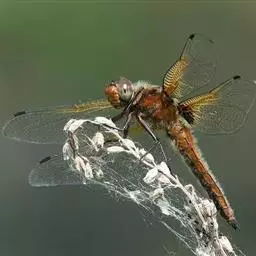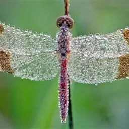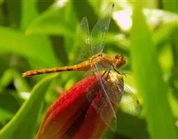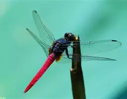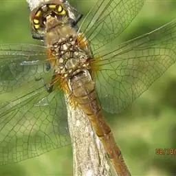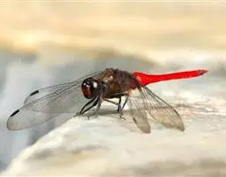 晓褐蜻系蜻科的一种中、小型昆虫,又名紫红蜻蜓。成虫腹长约25mm,后翅长约30mm。雄虫体色紫红,额头有蓝黑色金属光泽,翅脉 红色,翅基部有红褐斑,腹末节有小黑斑。