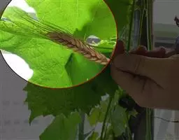 雌性脸为橄榄色或明亮的红褐色,眼睛上部紫褐色,下部灰色。胸部是橄榄色,分布黑色横向条纹。腹部是红褐色,也分布横向的黑色斑纹。翅膀是透明,上面有褐色点,叶脉是明亮的黄色或棕色。翼点是深褐色,腿是深灰色带有细的黄条纹。