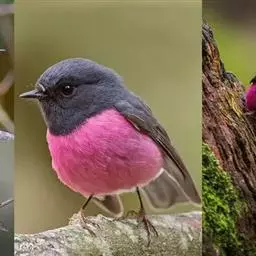 藏朱雀:全长约17-18厘米。雄鸟头部深红色具光辉,喉部暗红色具白色点斑;背部灰白色,各羽具玫瑰红…