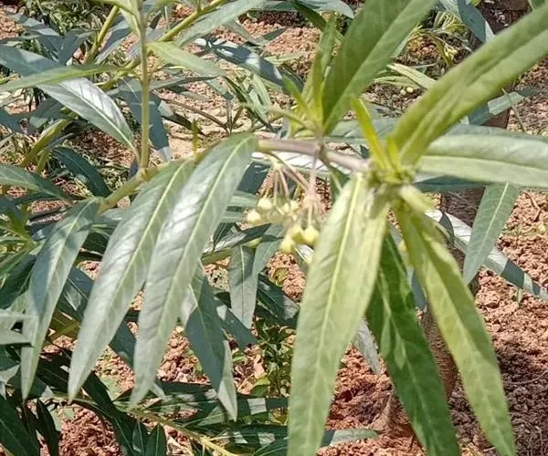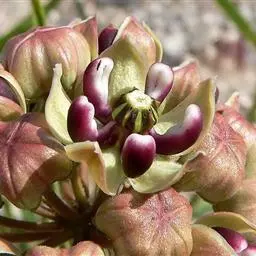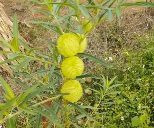灌木,全株具乳汁;茎被微毛。叶线形,对生或轮生。基部渐狭而成叶柄,无毛,叶缘反卷;侧脉不明显,聚伞花序生于枝的顶端叶腋间,花萼5深裂,裂片披针彤,外面被微毛,内面基部有腺体;花冠乳白色,5深裂,反折,被缘毛;副饱冠红色,兜状,花药先端有薄膜片;花粉块每室一个,下垂;子房由2枚离生心皮组成,柱头先端五角形,肉质、蓇葖果大,膨胀,球状,外果皮有软刺,刺长达1cm。种子卵形,先端具有白色绢质种毛、花期夏季,果期秋季 。