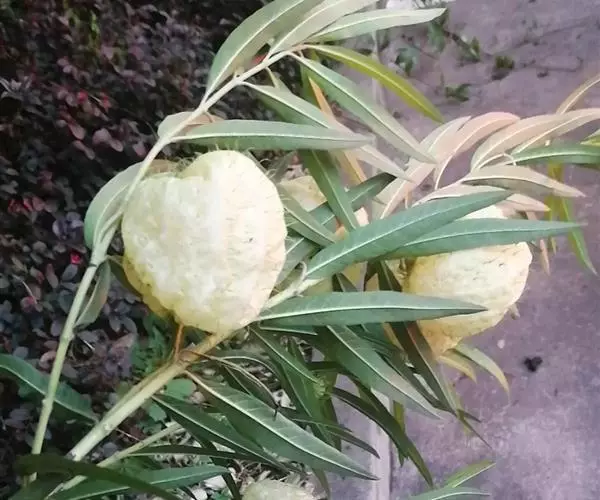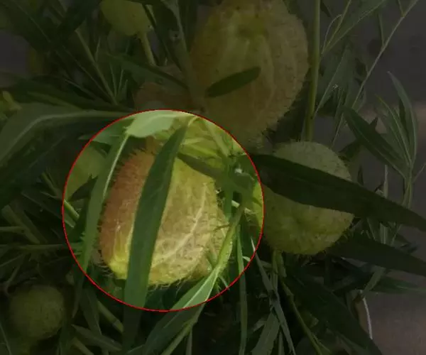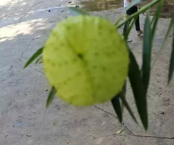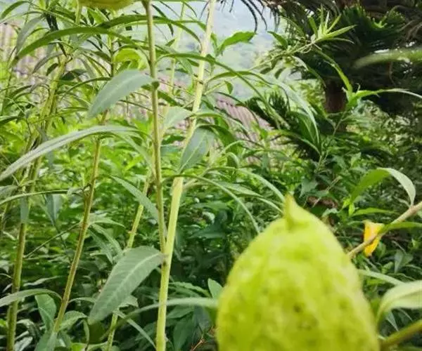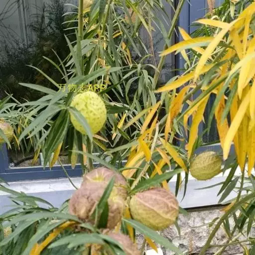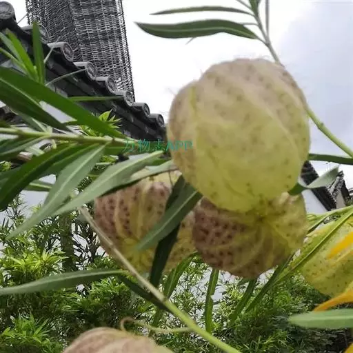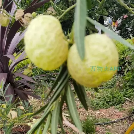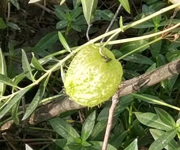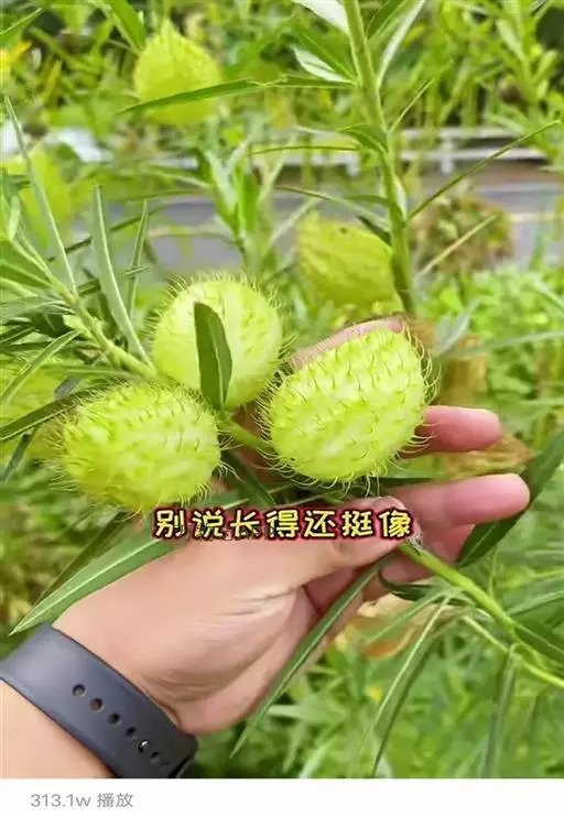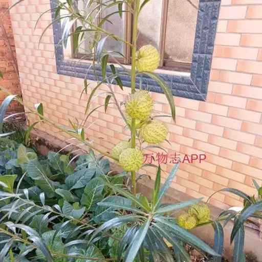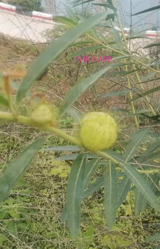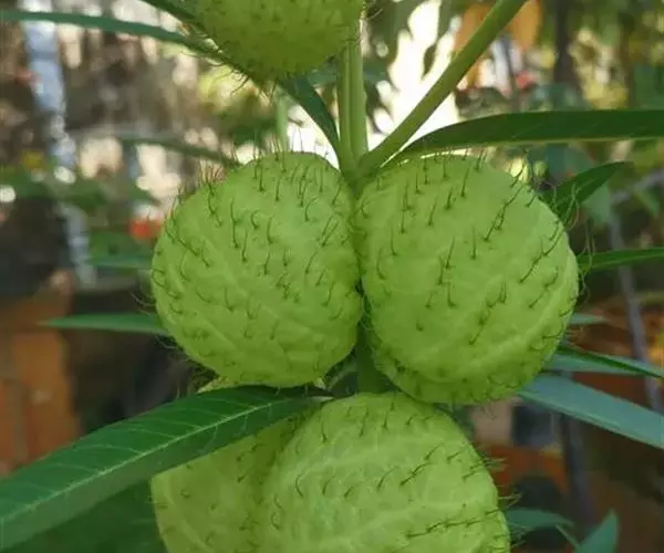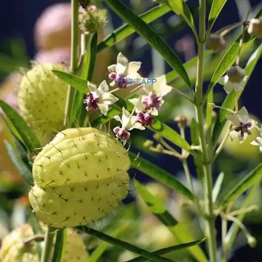 钉头果(Gomphocarpus fruticosus),又名气球花、气球果、棒头果、风船唐绵等,萝摩科钉头果属常绿灌木。原产热带非洲,华南植物园已有引种栽培。气球果的果实奇特,为黄绿色卵圆形或椭圆形果泡,果表有粗毛,似用钉子锤入,故名钉头果 。