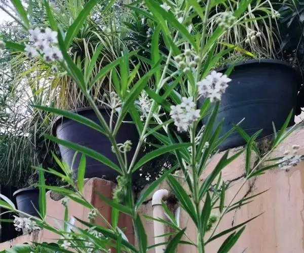 唐棉,株形直立,全株具白色乳汁;叶:线形似柳叶,色浓绿,背面淡绿色,对生;花:繖形花序,腋生,乳白…