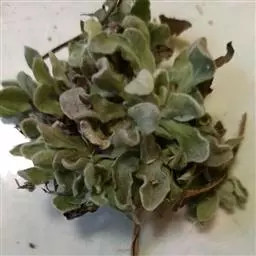 叶子表面宽厚,富肉质感且带有磨纱质感,看像石头质地;开红色小花,生于植株顶部,倒伞形密生,形状像花…