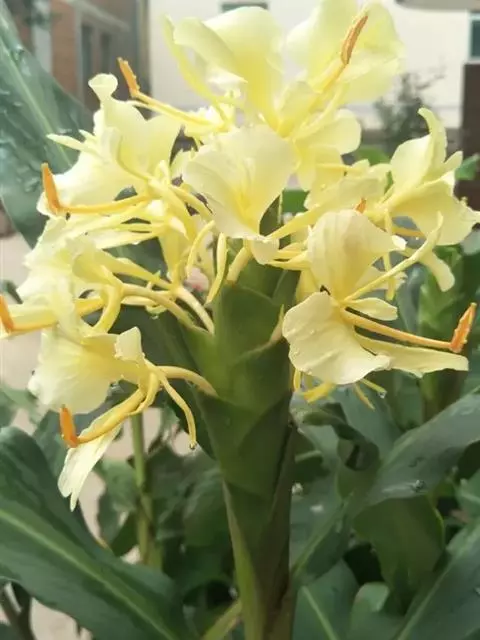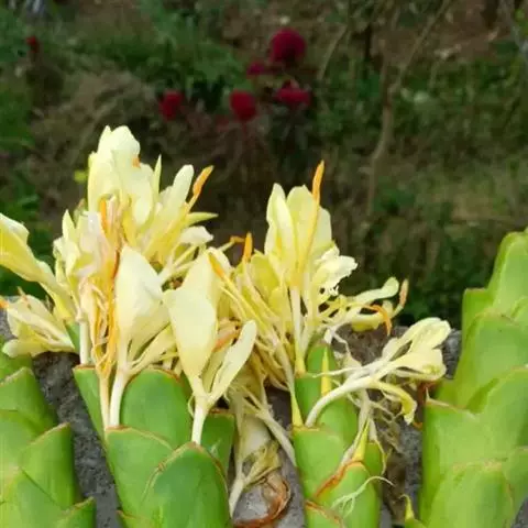 黄姜花:姜科,姜花属多年生草本草本芳香花卉,秋冬季开花,穗状花序,长圆形;苞片长椭圆形,覆瓦状排列,…