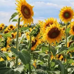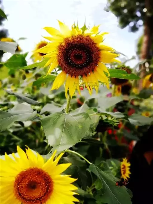 向日葵花盘形似太阳,花色亮丽,纯朴自然,充满生机。一般成片种植,开花时金黄耀眼,极为壮观,深受大家喜爱。