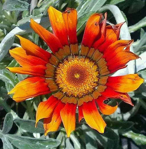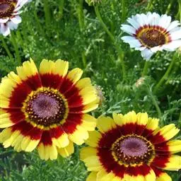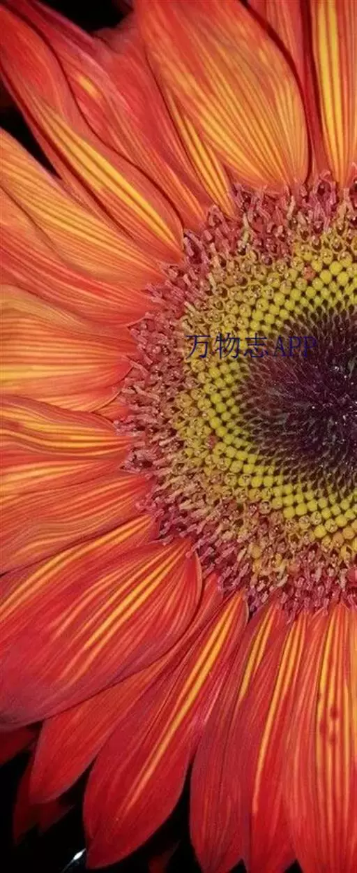 是一种结实的直立多年生植物,长2米,花头宽10厘米,深红色中心周围有明亮的黄色光线。