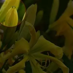 植物高大,杆长2.5-3.6米,并产生多花,花朵奶油黄色,中心巧克力色。