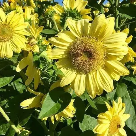 是一种新型的矮向日葵,非常适合盆栽或花园植物。每株植物能开出多达25朵,直径为15厘米的花朵。在播种后不到65天内开花。