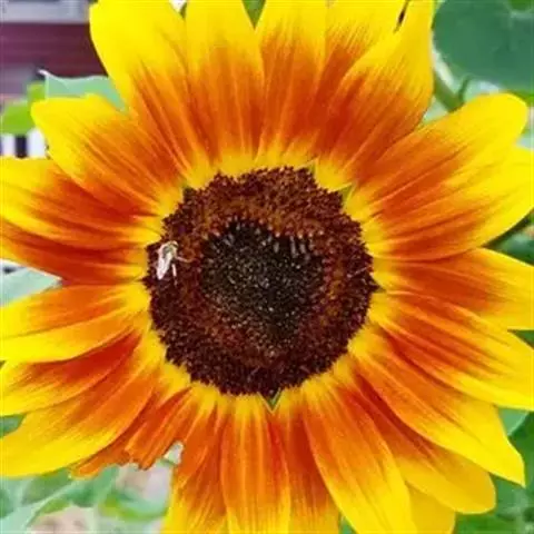 杆高1米。具令人叹为观止的棕色中心为15厘米的葵花,栗红色,花尖呈黄色,中间有一点黄色。每年产约40粒种子/克。对传粉者特别有吸引力。