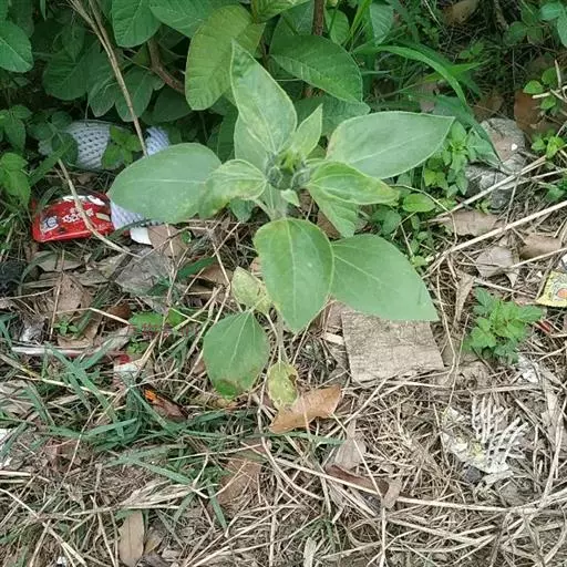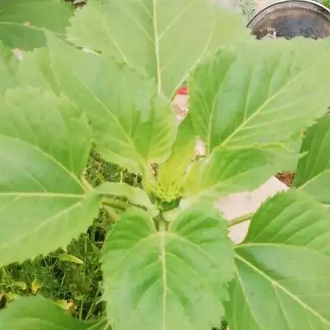 黑天鹅向日葵一年生草本植物,茎直立,圆形多棱角,质硬被白色粗硬毛。广卵形的叶片通常互生,先端锐突或渐尖,有基出3脉,边缘具粗锯齿,两面粗糙,被毛,有长柄。头状花序,单生于茎顶或枝端。矩卵形瘦果,果皮木质化,灰色或黑色。花期7-9月,果期8-9月