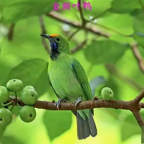 金额叶鹎是和平鸟科、叶鹎属的鸟类。体长16-20厘米。额和头顶前部金桔色,整个上体包括两翅表面草绿色。…