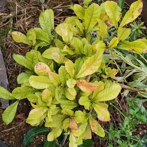 蛋黄果 Baehni),山榄科桃榄属小乔木。枝被褐色,短绒毛;叶窄椭圆形,先端渐尖;花生于叶腋,…