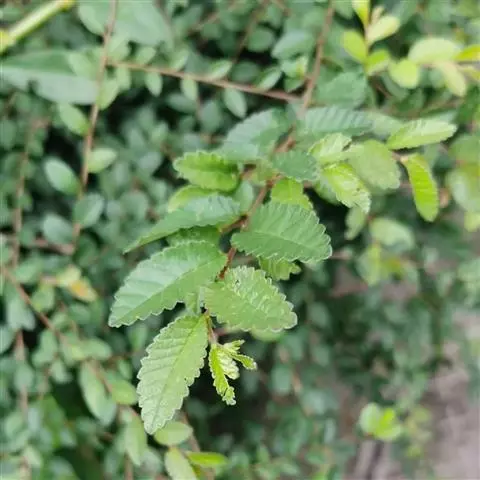 榉树 乔木,高达30米,胸径达100厘米;树皮灰白色或褐灰色,呈不规则的片状剥落;当年生枝紫褐色或棕褐色,疏被短柔毛,后渐脱落;叶薄纸质至厚纸质,大小形状变异很大,卵形、椭圆形或卵状披针形,长2-9厘米,宽1-4厘米,先端渐尖或尾状渐尖,基部有的稍偏斜,稀圆形或浅心形,边缘有圆齿状锯齿,具短尖头,侧脉8-14对;上面中脉凹下被毛,下面无毛。叶柄长4-9毫米,被短柔毛。