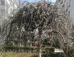 树皮暗灰色,粗糙,不规则纵裂。幼树枝条直立,且被白色毛;老树枝条先端下垂,有时木栓质发达成为瘤状。…