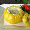 材料:鸡蛋1个、蛋黄1个、牛奶100克、鲜奶油100克、黄桃罐头少许、白吐司2片、糖40克、柠檬汁1大 匙、椰蓉少许