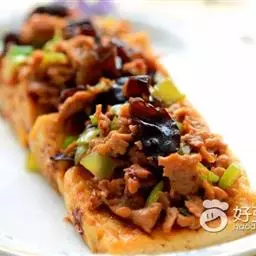 板豆腐放入滚水中氽烫2分钟后,捞起沥干,用筛网压成泥状备用。