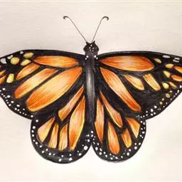 黑脉金斑蝶:翅阔8.6-12.4厘米。雄蝶较雌蝶为大。成年蝶颜色鲜艳,翅膀上有显眼的橙色及黑色斑纹…