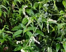 花:头状 花序多数,椭圆形,直径1.5-2毫米,无梗,直立或倾斜,有线形小苞叶,在分枝上排成密集的穗状花序,稀少为略疏松的穗状花序,并在茎上组成狭窄或中等开展的圆锥花序;总苞片3-4层,覆瓦状排列,外层总苞片较小,卵形或狭卵形,背面密被灰白色蛛丝状毛,边缘狭膜质,中层总苞片长卵形或椭圆形,背面密被灰白色蛛丝状柔毛,边宽膜质,内层总苞片椭圆形,半膜质,背面近无毛;雌花5-10朵,花冠狭管状,檐部具2裂齿,紫色,花柱伸出花冠外,先端2叉,反卷,叉端尖;两性花8一15朵,花冠管状,背面具黄色小腺点,檐部紫红色,花药线形,先端附属物尖,长三角形,基部圆钝,花柱与花冠近等长,先端2叉,叉端截形并有睫毛。