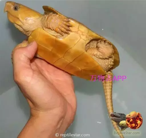 平胸龟 (学名:Platysternon megacephalum)是平胸龟科、平胸龟属动物。体扁平,头大,不能缩入壳内。头背覆以完整的盾片,上、下颚钩曲呈鹰嘴状。背甲长卵圆形,前缘中部微凹,后缘网,具中央嵴棱。腹甲近长方形,前缘平截,后缘中央凹入。背腹甲之问有下缘盾。四肢强,被有覆瓦状排列的鳞片。前肢5爪,后肢4爪。指、趾问具蹼。尾长,几乎与体长相等,具环状排列的长方形大鳞。头、背甲、四肢及尾背均为棕红色、棕橄榄色或橄榄色。腹甲生活时带橘黄色。雄性头侧、咽、颏及四肢均缀有橘色斑点。