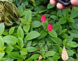 一年生细弱草本,高达50cm。全株被毛。茎上部多分枝,茎下部斜卧,节部稍膨大,带紫红色。叶对生;叶柄长3-4mm;叶片椭圆状长圆形至长圆状披针形,长1.5-5cm,先端尖,基部楔形,全缘。穗状花序顶生或腋生,长1-2.5cm,粗约6mm,花偏生于一侧;苞片2型,有花的苞片倒卵状椭圆形,长约3mm,背面短柔毛,具宽膜质边缘和睫毛,无花的苞片椭圆状披针形,作蓖齿状排列;小苞片2;花白色带淡紫色;萼5裂,裂片狭披针形;花冠长约4.5mm,二唇形,上唇先端凹,下唇3浅裂;雄蕊2,花药2室,药室不等高,较低的1室具小距;子房有胚珠4。蒴果卵形或长圆形,长约3mm,开裂时胎座自蒴底弹起。种子4颗,扁圆形,黑褐色。花期11月-翌年春季。