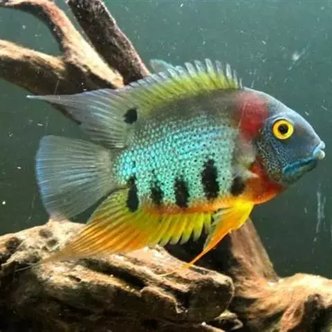 眼点丽鱼又称皇冠三间、孔雀鲈,为鲈形目,慈鲷科,丽鱼属一种淡水鱼类。…