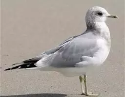 灰背鸥大型水鸟,体长62~69厘米。嘴直,黄色,下嘴先端有红色斑。脚粉红色,头、颈和下体白色,背、…