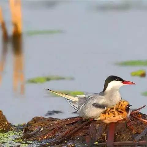 鸥嘴噪鸥,中型水禽,体长31~39厘米。夏羽额、头顶、枕和头的两侧从眼和耳羽以上黑色。背、肩、腰和…