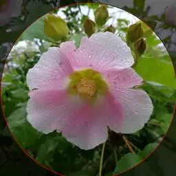 多年生沉水草本。茎长30厘米以上,无毛或在节上有疏毛。叶有短或长柄;叶片轮廓近半圆形或扇状半圆形,直径2.5-4厘米,3-5回2-3裂,小裂片近丝形,在水外通常收拢或近叉开,无毛或近无毛;叶柄长0.7-2厘米,基部有宽或狭鞘,鞘长3-4毫米,通常多少有短伏毛,偶尔叶柄只有鞘状部分。花直径1-1.5(-2)厘米;花梗长2-5厘米,无毛;萼片反折,卵状椭圆形,长2.5-4毫米,边缘膜质,无毛;花瓣白色,基部黄色,倒卵形,长5-9毫米;雄蕊10余枚,花药长0.6-1毫米; 花托有毛。聚合果卵球形,直径约3.5毫米;瘦果20-40,斜狭倒卵形,长1.2-2毫米,有横皱纹。花期5月至8月。