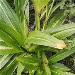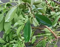 榕管蓟马的成虫、若虫都可以为害灰莉,主要为害嫩叶和幼芽,一般不为害老叶。成虫、若虫沿嫩叶主脉两侧锉吸汁液,可在叶面形成虫瘿;严重的造成畸形,如叶面扭曲或沿主脉卷曲。在一张叶片上一般可以看到成虫、若虫一起群集为害的现象。