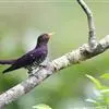 紫金鹃是一种羽色艳丽的小形杜鹃,体长约17厘米。雄鸟头、颈、胸和上体辉紫色,腹白色,…
