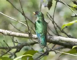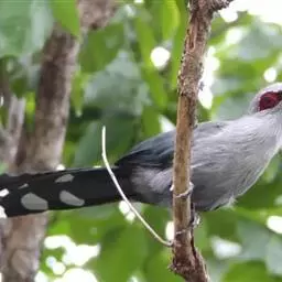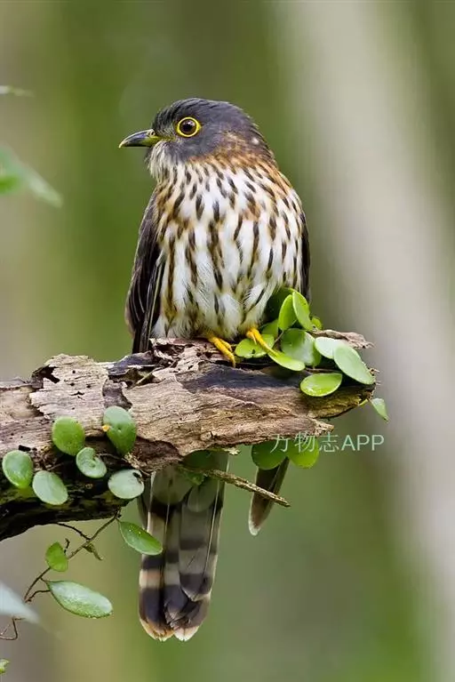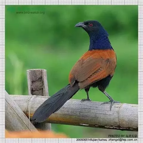 绿嘴地鹃:体形似小鸦鹃,但羽色大致绿灰;嘴绿色,头侧眼的周围有一裸区;后爪弯曲。虹膜赤红色,…