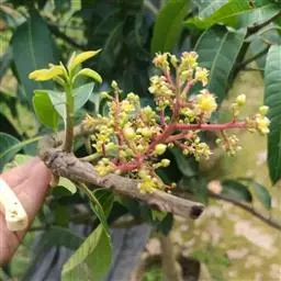 芒果白粉病多发生于开花结果期,为害花序和叶片。