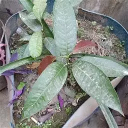 该品种是百色市水果办于2000年5月从中缅边境引进试种成功的芒果单株。树冠卵圆形,树势中等,主干灰白色,裂纹纵裂,下粗上细,枝条较直立,梢长15-20厘米,叶为单叶、革质、长椭圆形,叶缘全缘,呈小波浪向上卷。