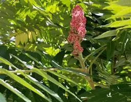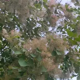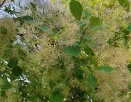 圆锥花序长20-35厘米,多花密集,被灰黄色微柔毛,分枝开展,最基部分枝长6-15厘米;苞片披针形,长约1.5毫米,被微柔毛;花小,杂性,黄色或淡黄色;花梗长1.5-3毫米,具节;萼片卵状披针形,长2.5-3毫米,宽约1.5毫米,渐尖,外面被微柔毛,边缘具细睫毛;花瓣长圆形或长圆状披针形,长3.5-4毫米,宽约1.5毫米,无毛,里面具3-5条棕褐色突起的脉纹,开花时外卷;花盘膨大,肉质,5浅裂;雄蕊仅1个发育,长约2.5毫米,花药卵圆形,不育雄蕊3-4,具极短的花丝和疣状花药原基或缺;子房斜卵形,径约1.5毫米,无毛,花柱近顶生,长约2.5毫米。
