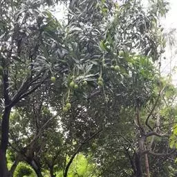 芒果树冠球形,常绿乔木,郁闭度大,为热带良好的庭园和行道树种。
