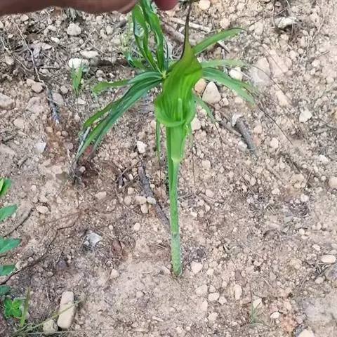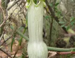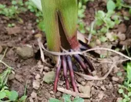 各附属器棒状或长圆锥状,长3.5-4.5厘米,先端钝,基部增粗至0.9-1.2厘米,具长5-10毫米的柄,向上渐狭,上部粗5-8毫米。花期4月。