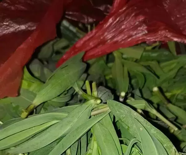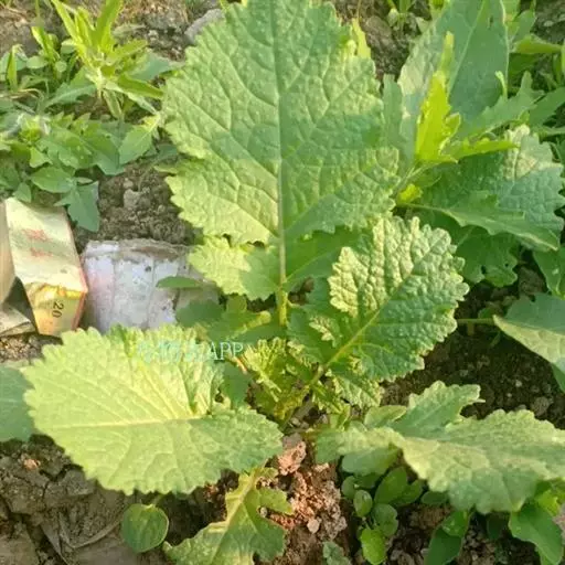 榨菜(通称) 菱角菜、羊角儿菜(四川)下部叶的叶柄基部肉质,膨大,形成高低不平的拳状;基生叶倒卵形或长圆形,长40-80厘米,平坦或皱缩,基部大头羽状深裂,成为具沟的粗叶柄。