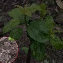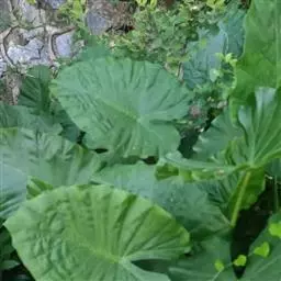 块根肉质,粗大,坚实,长圆球形,顶部不缩小,外皮及根肉均为黄棕色,下面生多数须根;基生叶及下部茎生叶长圆状卵形,长20-30厘米,有粗齿,稍具粉霜。