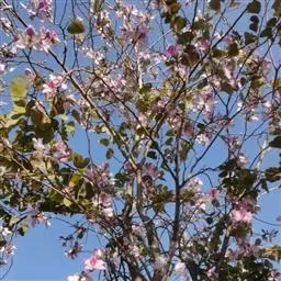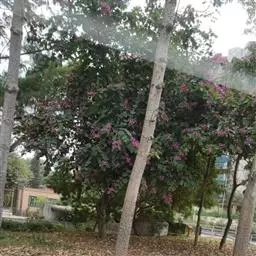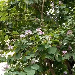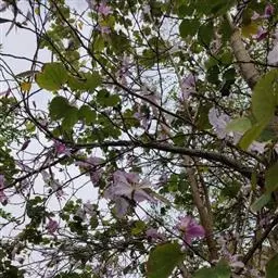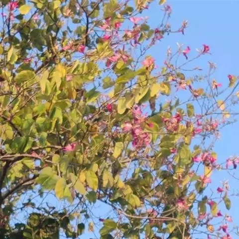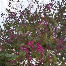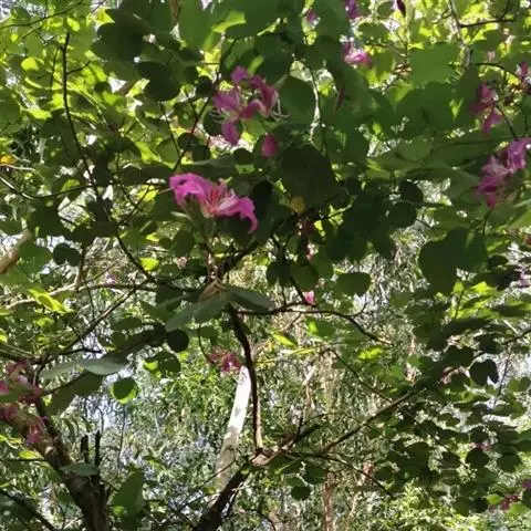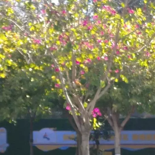 洋紫荆:落叶乔木;树皮暗褐色,近光滑;幼嫩部分常被灰色短柔毛;枝广展,硬而稍呈之字曲折,无毛。叶近…