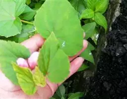 由漆斑菌引起的秋海棠叶斑病症状:病症一般出现在秋海棠叶片边缘、叶尖和破损叶片的叶脉上。坏死区域呈现黑褐色,然后是水渍状。诊断方法是下部的叶片经常会不规则形状的孢子群,中央呈黑色,但边缘为白色。