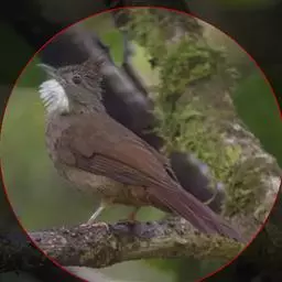 大噪鹛:中型鸟类,体长32-36厘米。额至头顶黑褐色,背栗褐色满杂以白色斑点,…